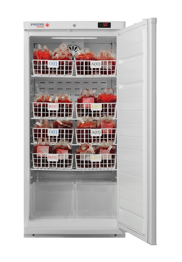 Предназначен для хранения крови и эритроцитной массы на станциях переливания крови, в помещениях больниц, ветеринарных клиниках и других учреждениях здравоохранения. Особенности и дополнительные элементы: микропроцессорный регулятор температуры со сверхчувствительным температурным датчиком, дверь — металлическая с замком, автоматическое поддержание температуры в камере, сигнализация при отклонении от заданного диапазона температур, отображение температуры на панели управления, система принудительной циркуляции воздуха, отключение вентилятора при открывании двери, кассеты для хранения контейнеров с кровью и компонентами — 8 шт.