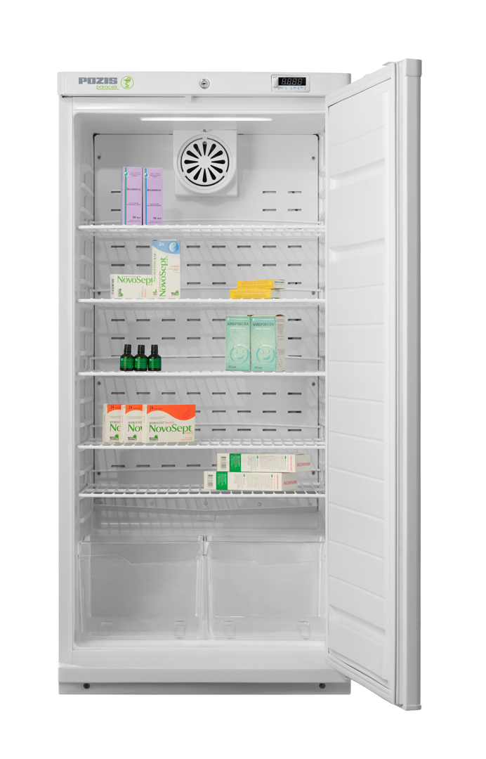 Микропроцессорный регулятор температуры со сверхчувствительным датчиком температуры; система принудительной циркуляции воздуха; металлическая дверь с замком; автоматическое поддержание температуры в камере; сигнализация при отклонении температуры от заданной; отображение температуры на табло панели управления; отключение вентилятора при открывании двери, пластиковые контейнеры для фарм.препаратов — 2 шт.